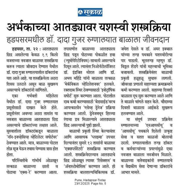 Address:Dr. Dada Gujar Hospital Sr. No. 165-A Plot No. 159-173, Opposite Sane Guruji school, Malwadi , Hadapsar, Pune.